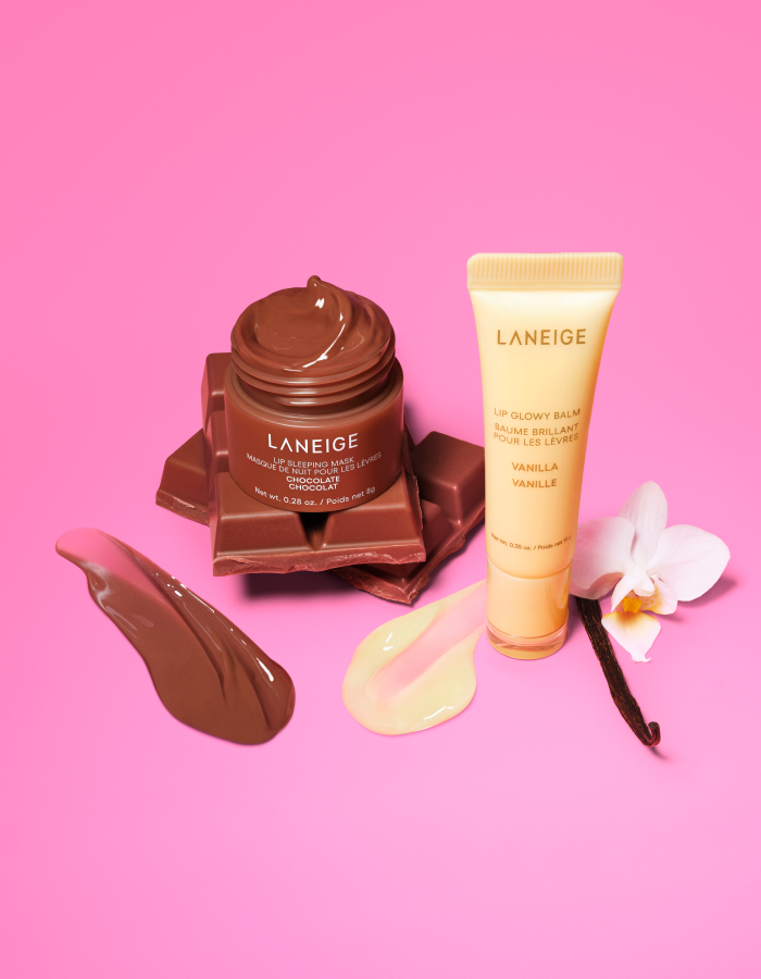 Uniting vanilla balm and chocolate sleeping mask, the exclusive S'mores Kisses Kit provides 24-hour lip care